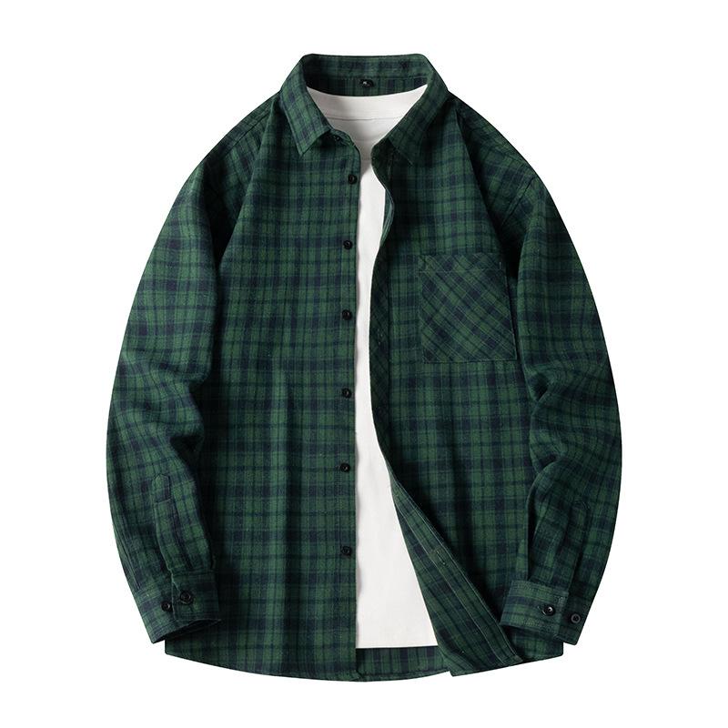 Весенне-осенняя мужская клетчатая рубашка с длинным рукавом, ретро свободная повседневная куртка-рубашка