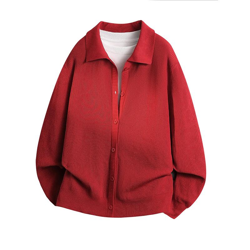 Вязаная куртка-поло с отложным воротником для мужчин, весна и осень, минималистичная толстовка в корейском стиле для мужчин, повседневная куртка, куртка-свитер