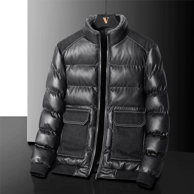 Зимняя мужская куртка из плотного хлопка с приталенным воротником-стойкой, сшитым из искусственной кожи, большим карманом для сохранения тепла у мужчин