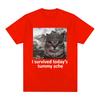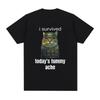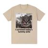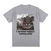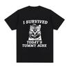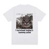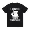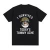 Я выжил сегодняшнюю боль в животе Футболка Мем с кошачьим узором Футболка мужская с коротким рукавом повседневная 100% хлопок