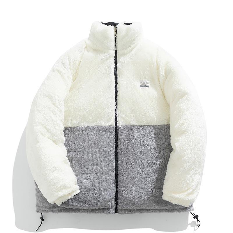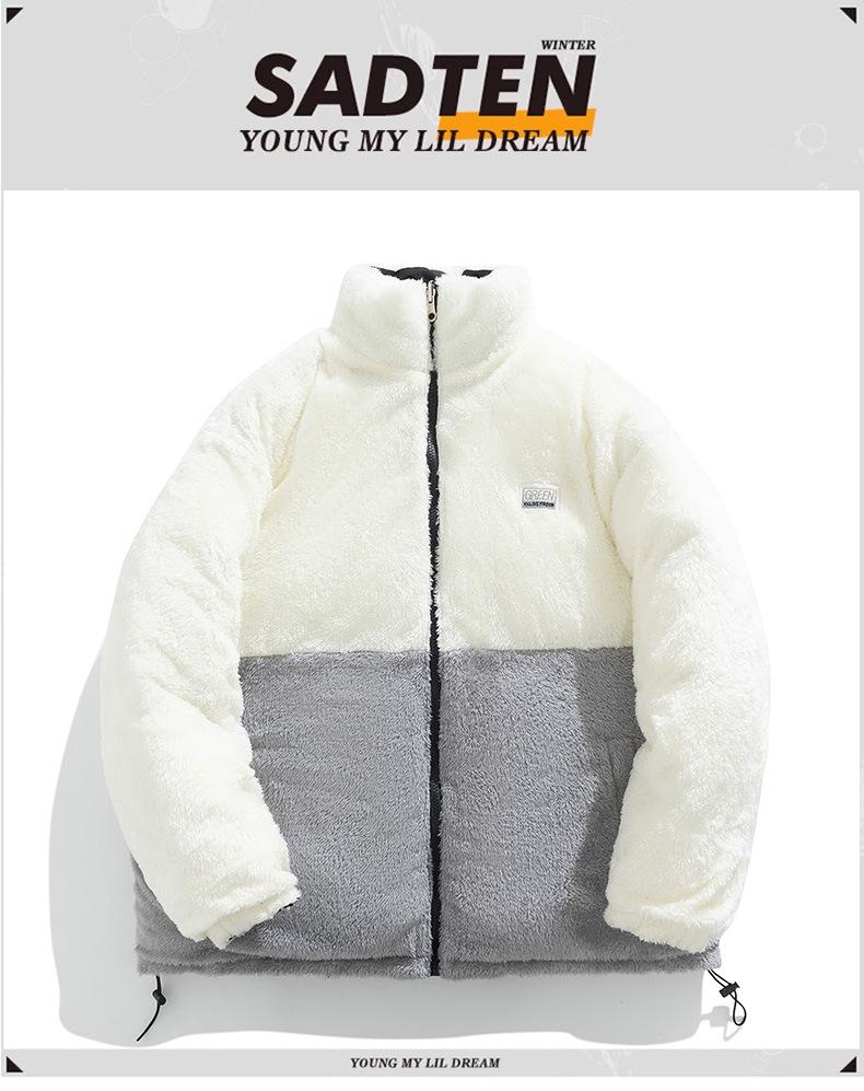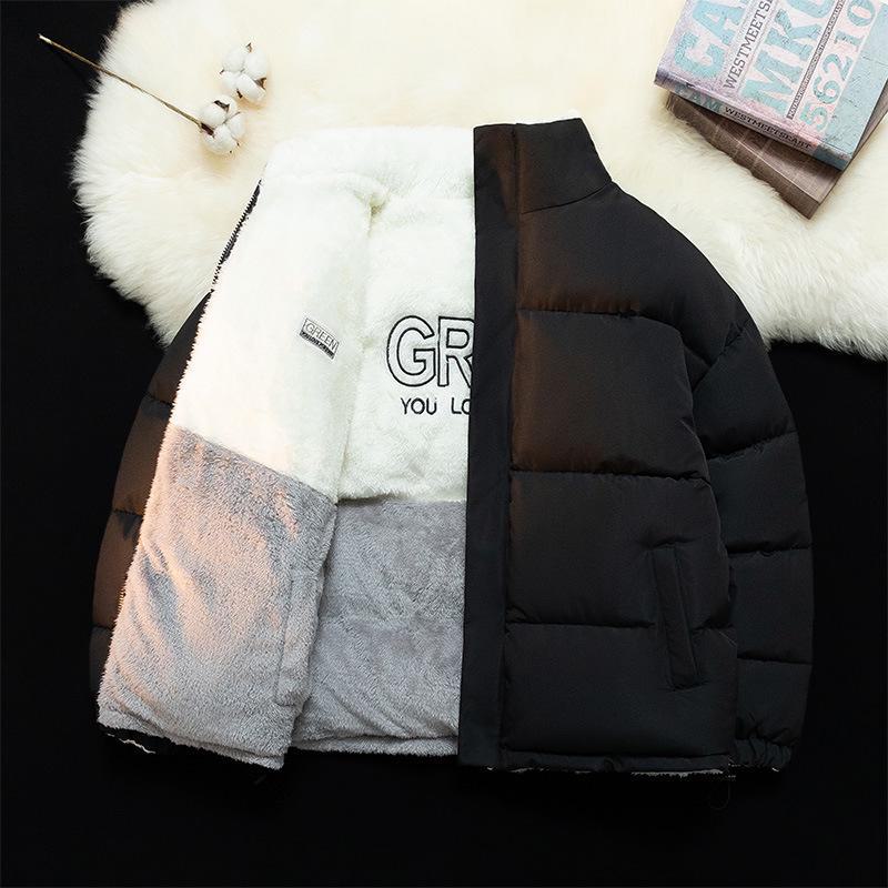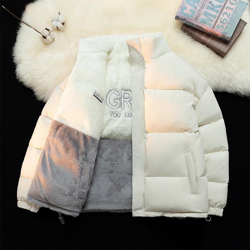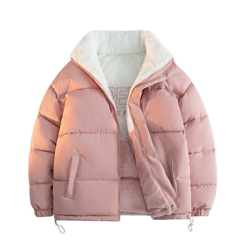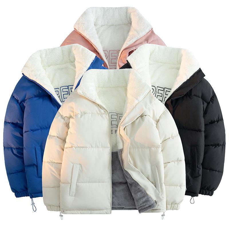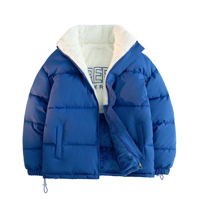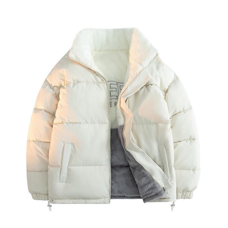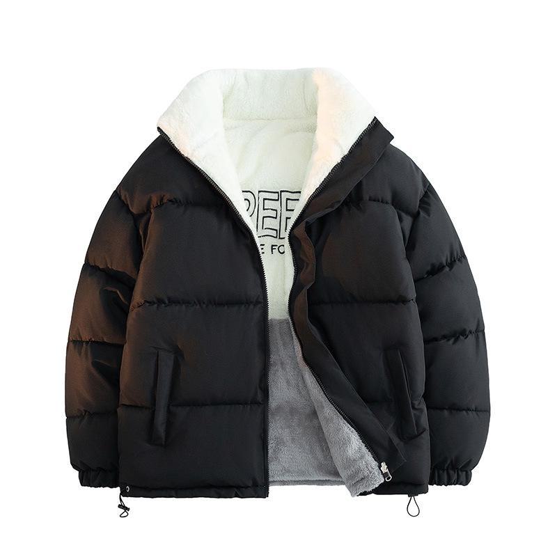 Мужское зимнее хлопковое пальто с воротником-стойкой и подкладкой из овечьего флиса — повседневный, утепленный стиль для пар