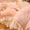 Утолщенный комплект из четырех предметов из молочного флиса, Утолщенное постельное белье из флиса, Зимний резной коралловый флис, Пододеяльник, Простыня, Юбка для кровати