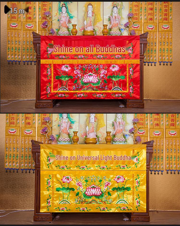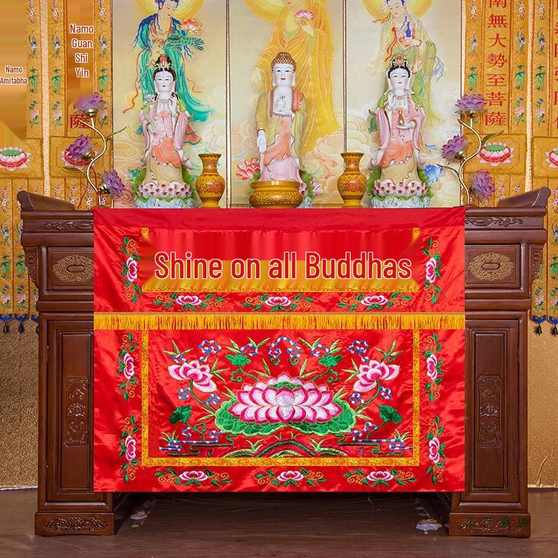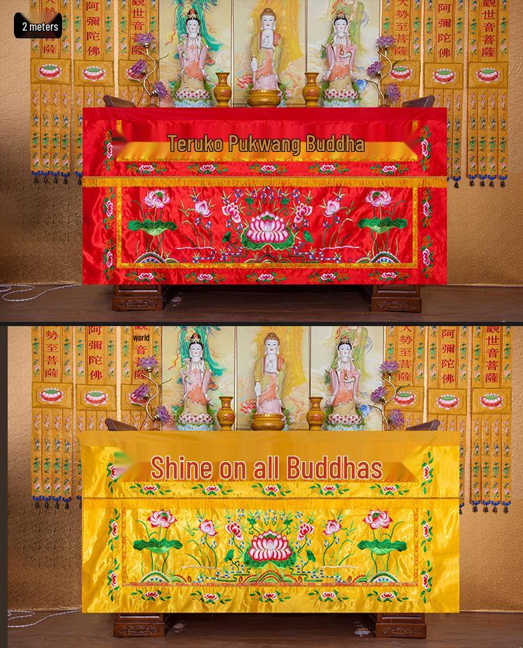 Занавеска на алтарный стол в Зале Будды - «Свет Будды сияет повсюду» Комплект алтарной ткани и юбки для стола