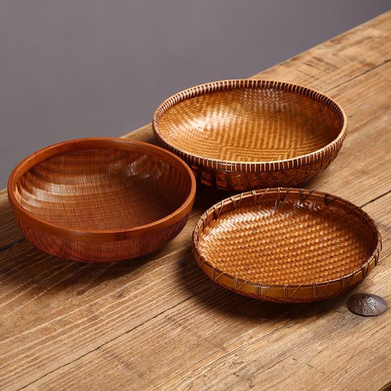 Lacquered Bamboo Woven Basket: Round Retro Fruit, Snack, and Tea Tray — купить товар онлайн с бесплатной доставкой по всему миру!