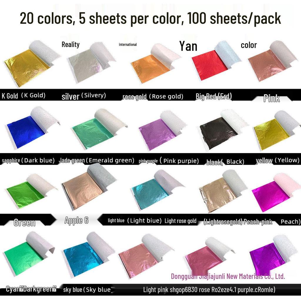 Большой размерный ряд: Black 100 sheets/pack, Cyan green 100 sheets/pack, Fuchsia 100 sheets/pack, Bright red 100 sheets/pack, Royal blue 100 sheets/pack, K gold 100 sheets/pack, Rose gold 100 sheets/pack, Silver leaf 100 sheets/pack, Peach red 100 sheets/pack, Emerald green 100 sheets/pack, Light rose gold 100 sheets/pack, Green 100 sheets/pack, Sky blue 100 sheets/pack, Purple 100 sheets/pack, Light blue 100 sheets/pack, Apple 6 100 sheets/pack, Light pink 100 sheets/pack, Pink purple 100 sheets/pack, Lemon yellow 100 sheets/pack, 20 colors 5 sheets each, 100 sheets/pack, Pink 100 sheets/pack