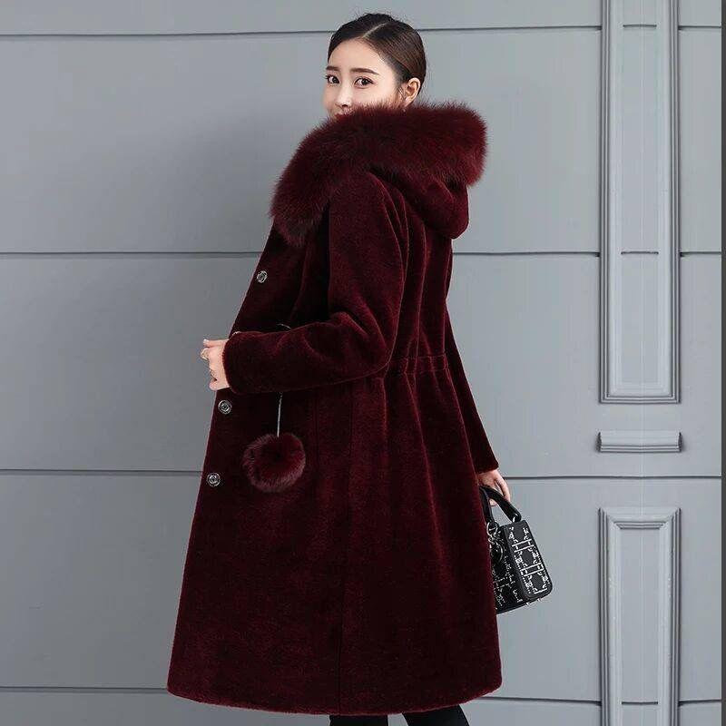 Пальто из овечьей шерсти женское длинное новое приталенное с капюшоном воротник из искусственного лисьего меха пальто из искусственного меха