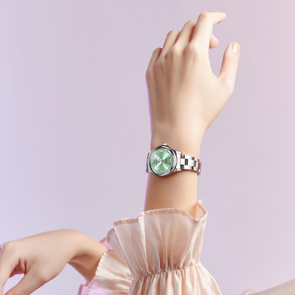 OLEVS Quartz Watch with Stainless Steel Classic Luminous 30M Water and Cute for Business or Green Women's Band, Dial, Function, Resistance, Popular,