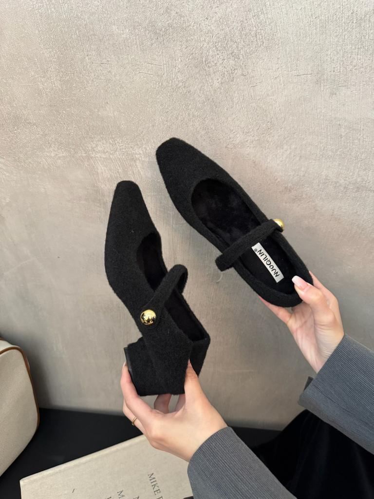 2025 новая французская женская обувь на толстом каблуке с квадратным носом, шерстяные туфли-лодочки, бабушкины туфли, вельветовые туфли на среднем каблуке Мэри Джейн, пушистые туфли