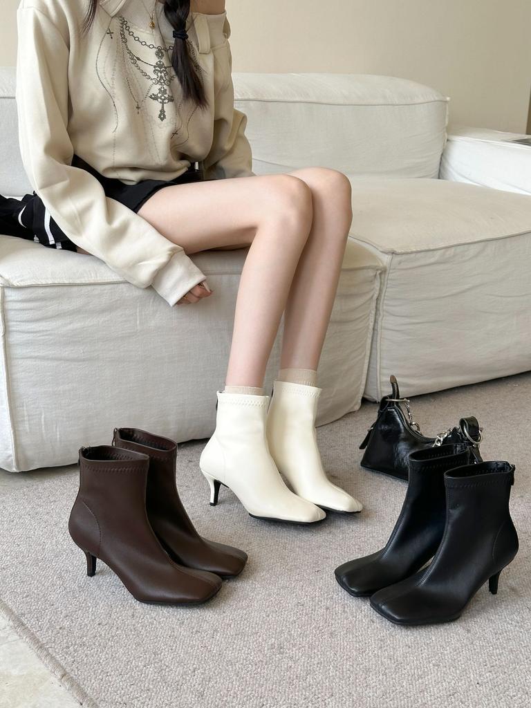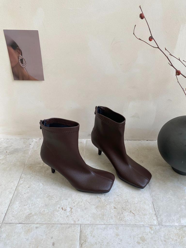 2025 осень новый квадратный носок тонкий каблук высокий каблук темперамент тонкий французская мода сексуальные короткие ботильоны