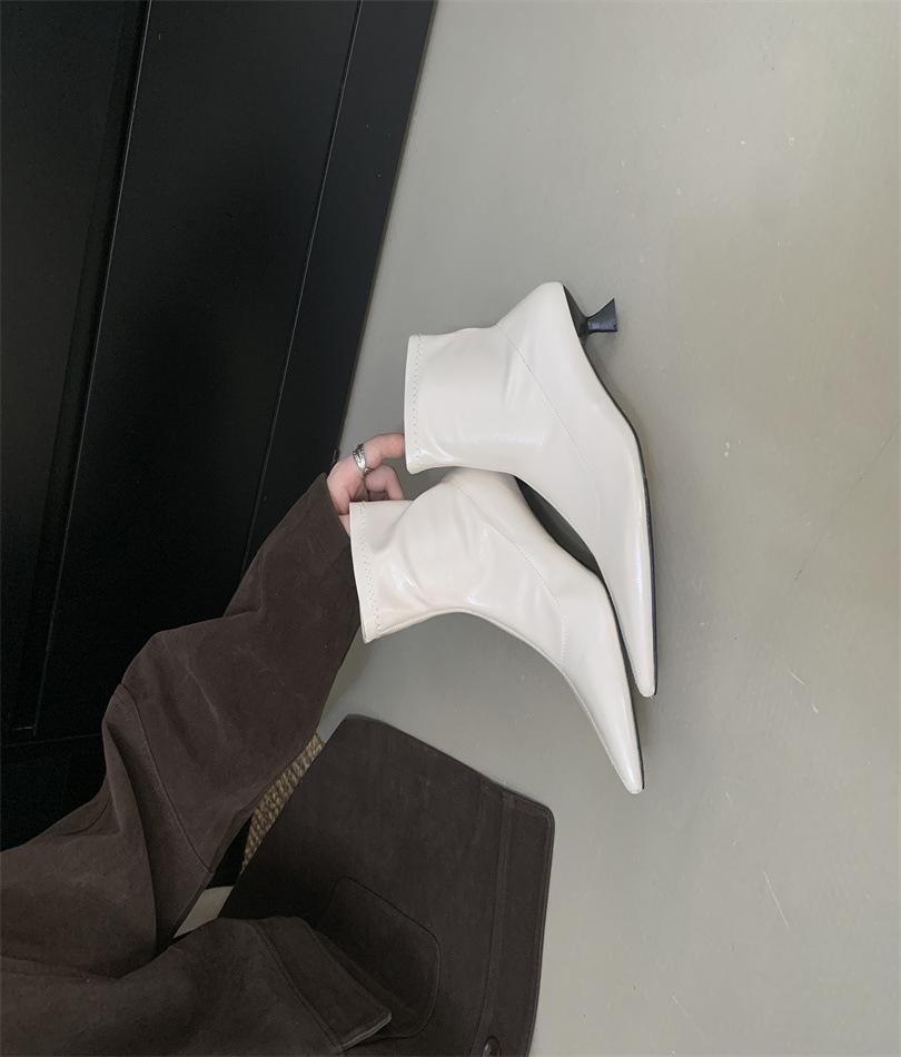 2025 осень новая мода мягкая кожа молния сзади низкий голенище острый носок тонкий каблук тонкий интернет-знаменитость Мартин короткие ботинки женские