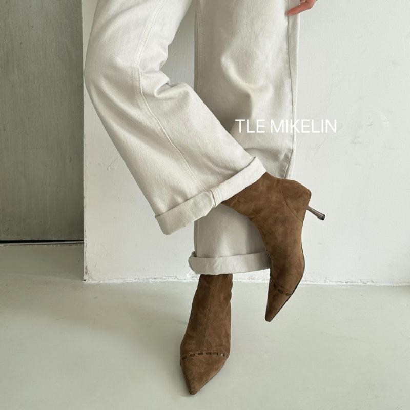 French pointed stitched short boots women's 2025 autumn sleeve elastic thin boots thin heel temperament fashion boots and ankle boots