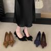 2025 новая осень новая остроносая замшевая туфля-бант ретро высокие каблуки женская модная танкетка для работы