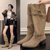 Осень-зима 2025 ретро пряжка ремня рыцарские сапоги европейские и американские модные сапоги остроносые сапоги на толстом высоком каблуке высокие сапоги женские