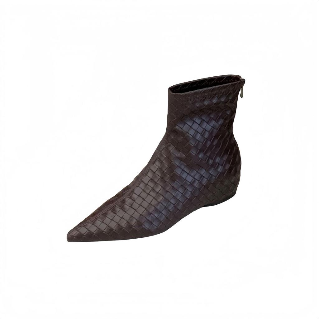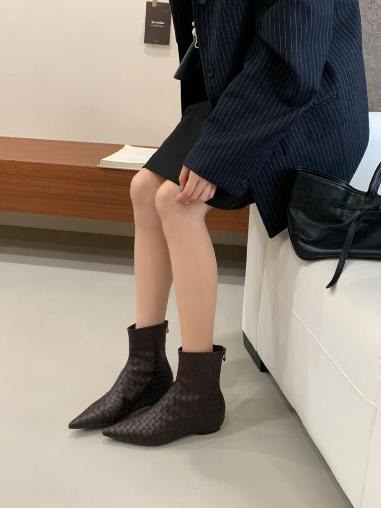 Осень-зима 2025 новые остроносые плетеные сапоги-ботильоны на танкетке со свободными рукавами женские с внутренней платформой и средней высоты