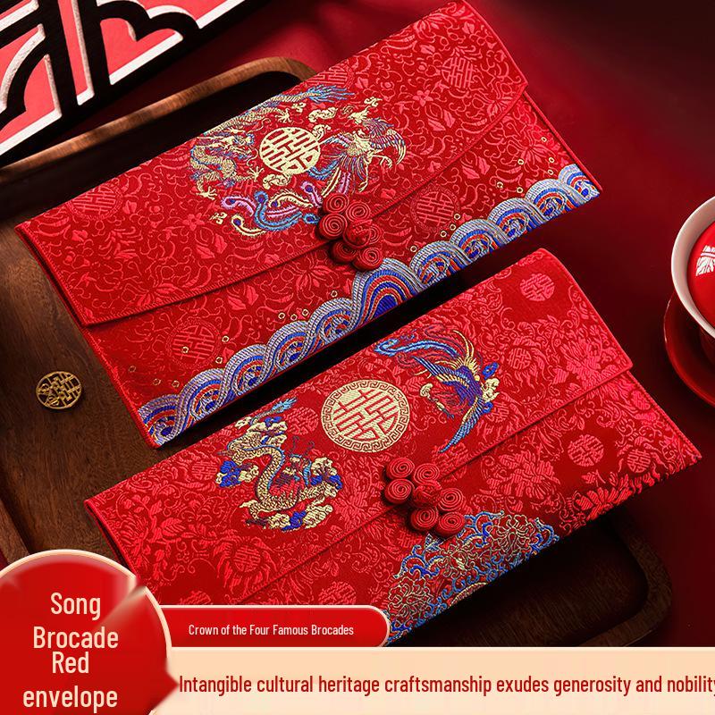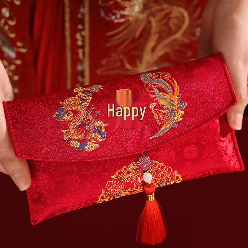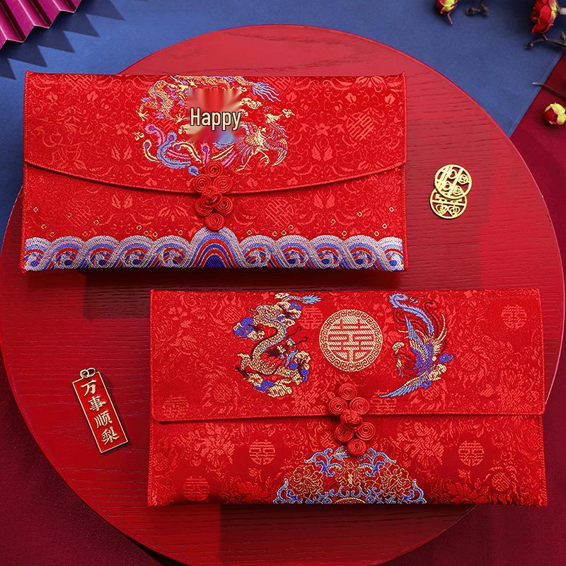 Свадебный красный конверт премиум-класса для денежных подарков - Тканевый счастливый мешок на десять тысяч юаней для подружек невесты