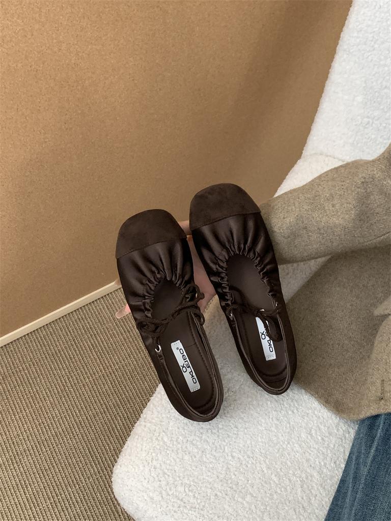Французские ретро плиссированные туфли Мэри Джейн на плоской подошве со шнуровкой, туфли-лодочки с мелким вырезом, женские вечерние туфли в стиле ретро, с круглым носком, балетки на одном ремешке