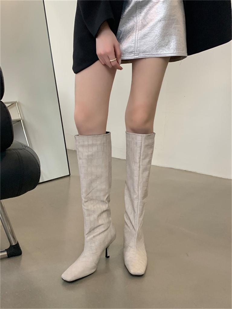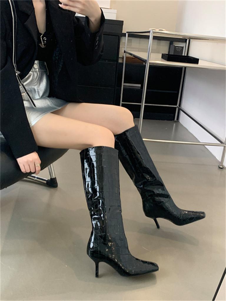 2025 новые сапоги-рыцари на высоком каблуке с квадратным носком, с высоким голенищем, с узором под крокодила, европейско-американские сапоги до колена
