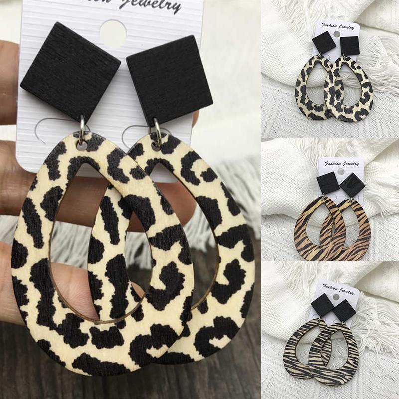 Серьги-подвески 'Капли дождя' с леопардовым и зебровым узором, в винтажном богемном стиле, деревянные