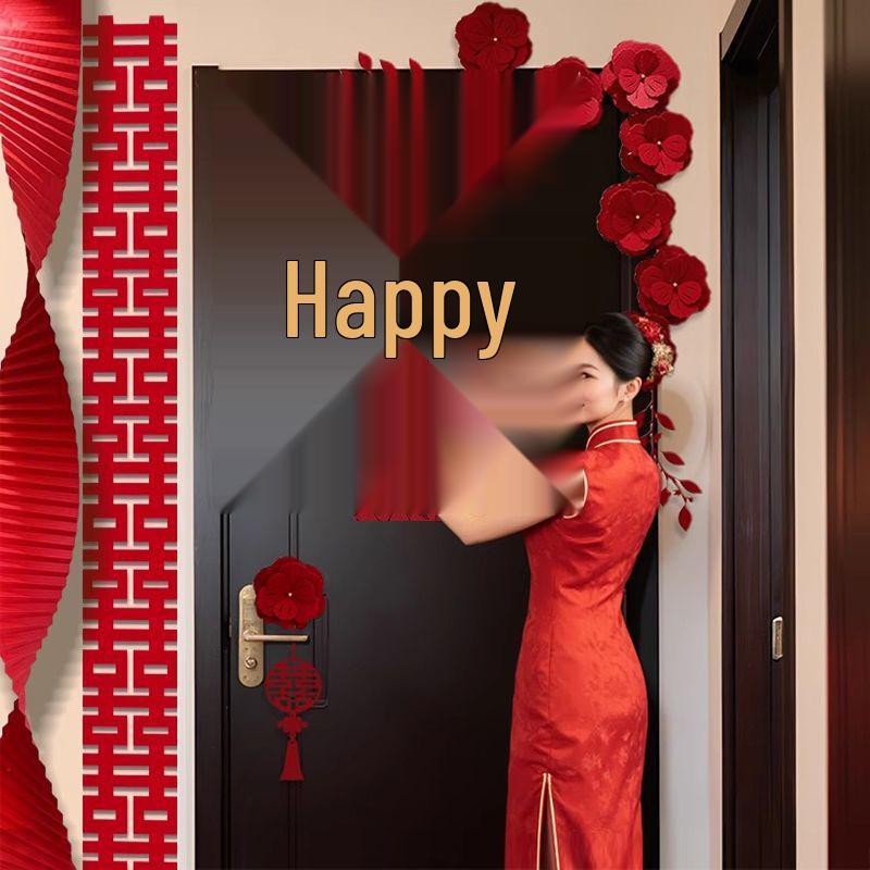 Double Happiness Wedding Room Decor Set - Dual-Sided Bedroom Stickers for a Blissful Atmosphere