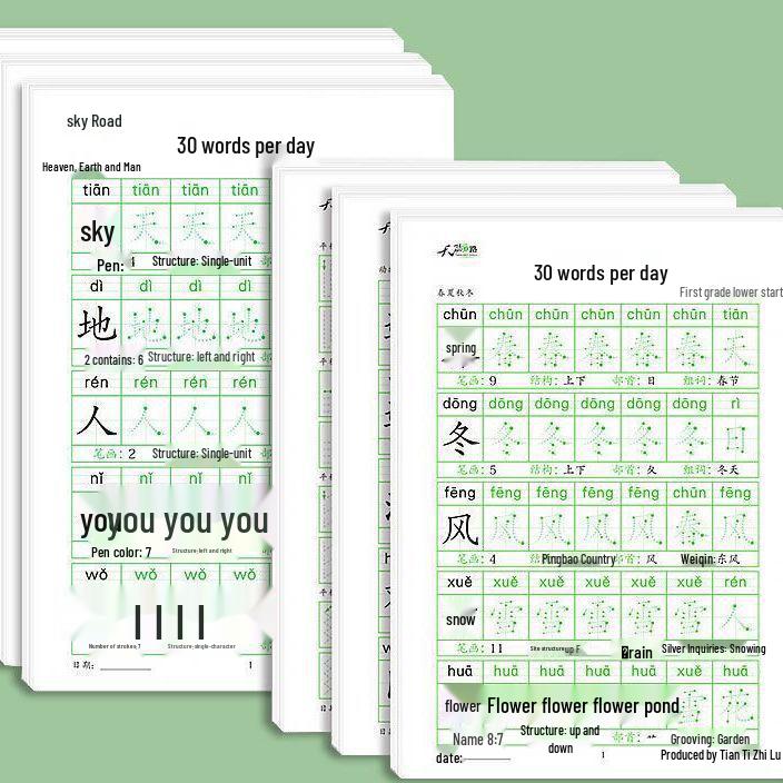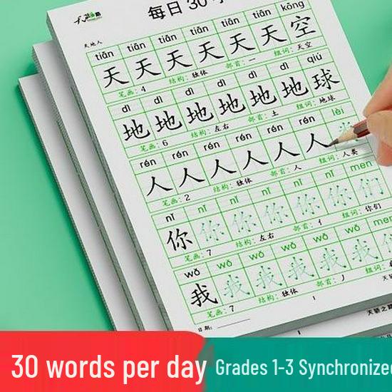 Книга для практики обводки китайских иероглифов для 1-6 классов: Ежедневная синхронная каллиграфия на 30 иероглифов для учеников начальной школы