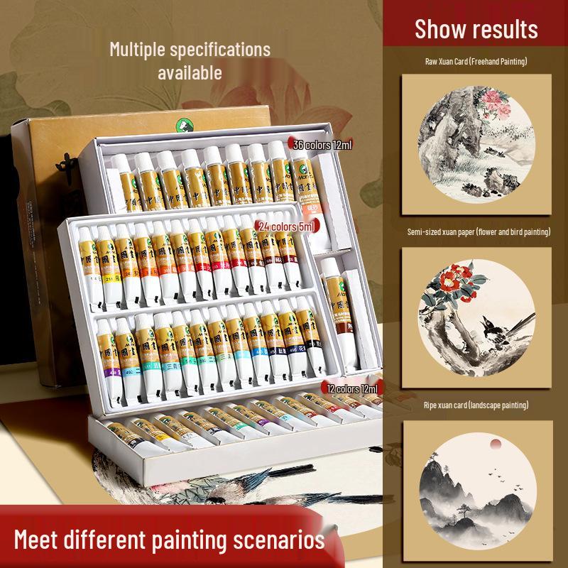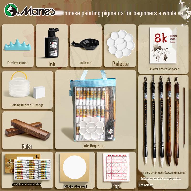 Набор инструментов для китайской живописи Мари: 12 или 24 цвета пигментов и кисти для тонкой работы