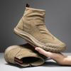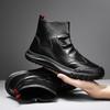 Мужская обувь Осенние высокие кожаные ботинки на молнии Толстая подошва Противоскользящие мотоциклетные ботинки Мужские ботинки