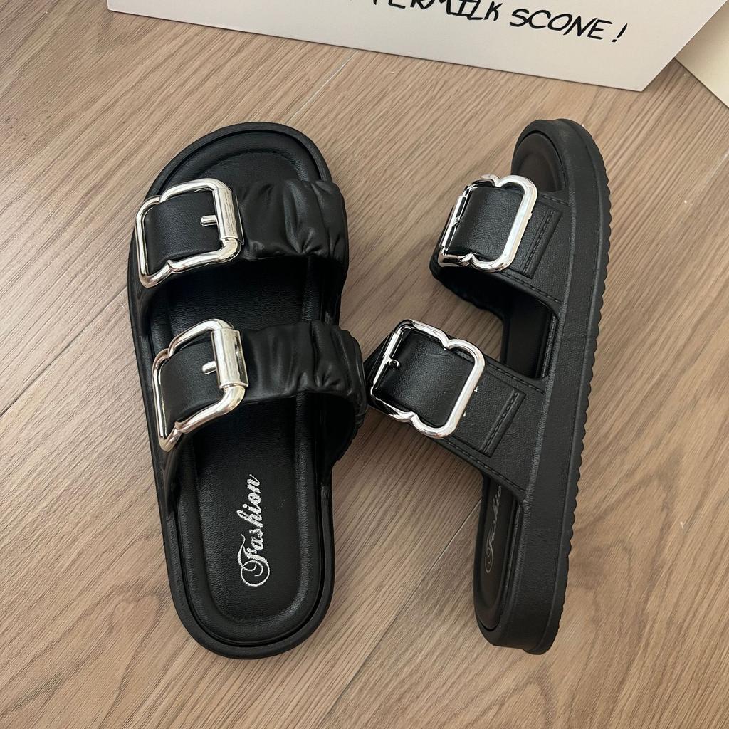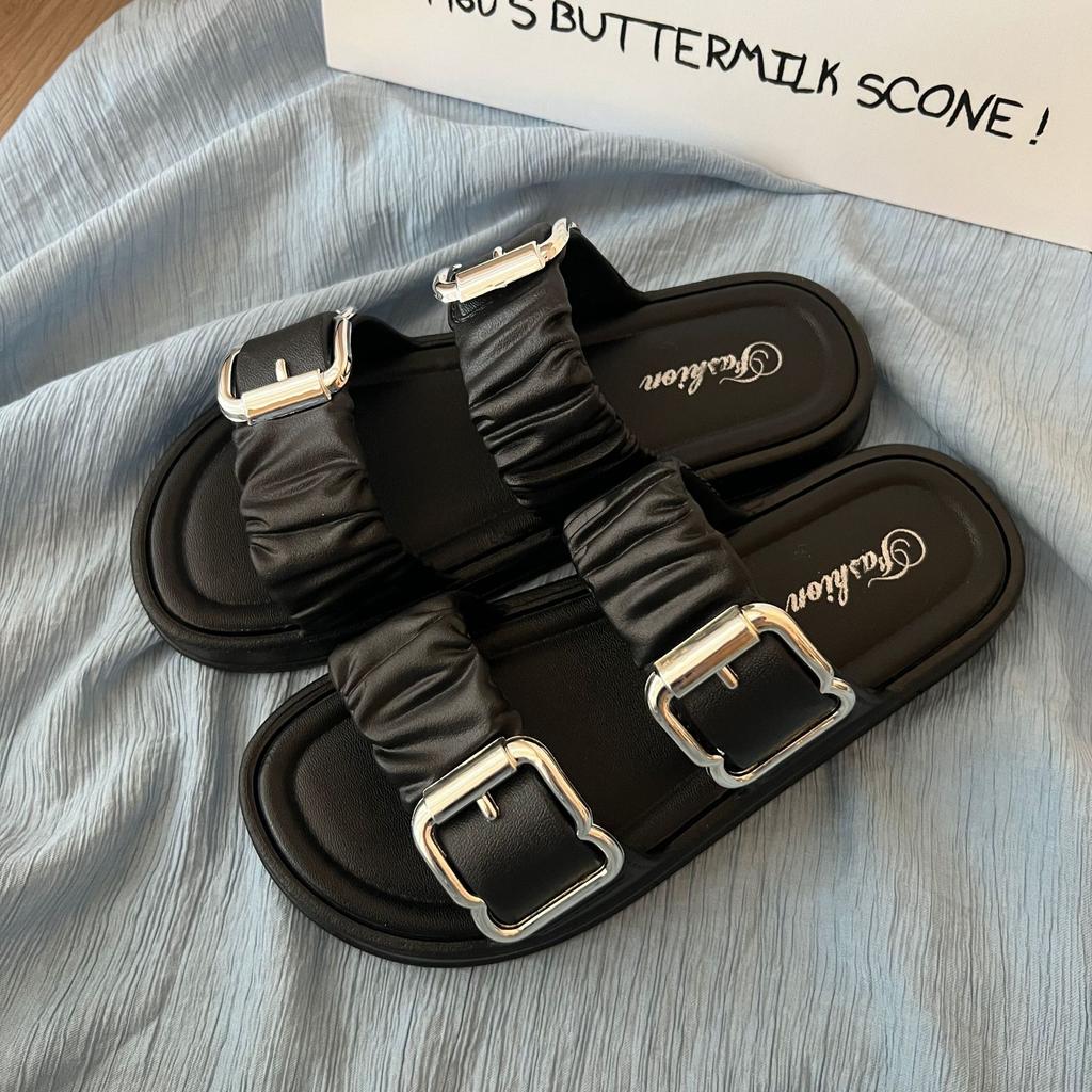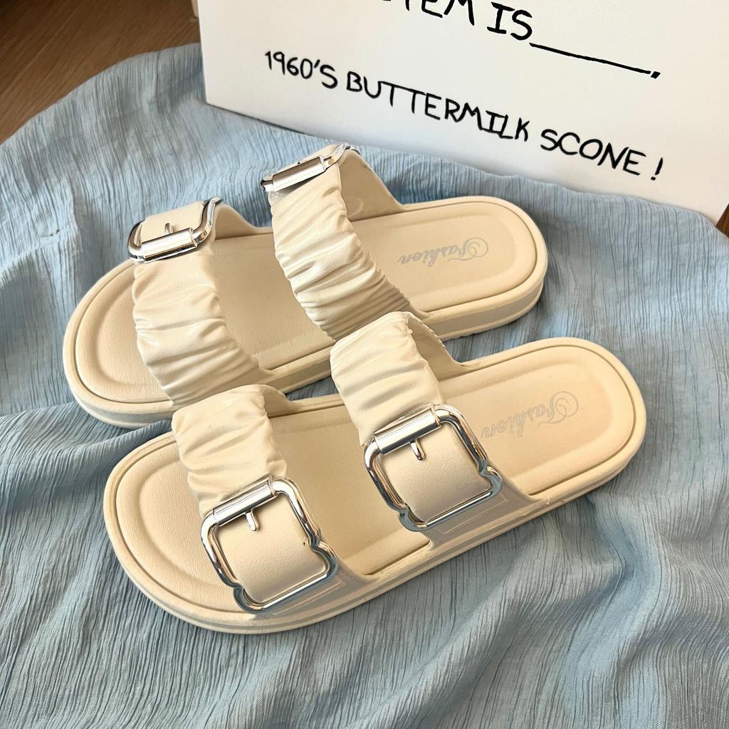 Тапочки на толстой подошве корейской версии, повседневные женские, с пряжкой, пляжные, полутачные, в римском стиле, юбка в тон, лето, новый стиль