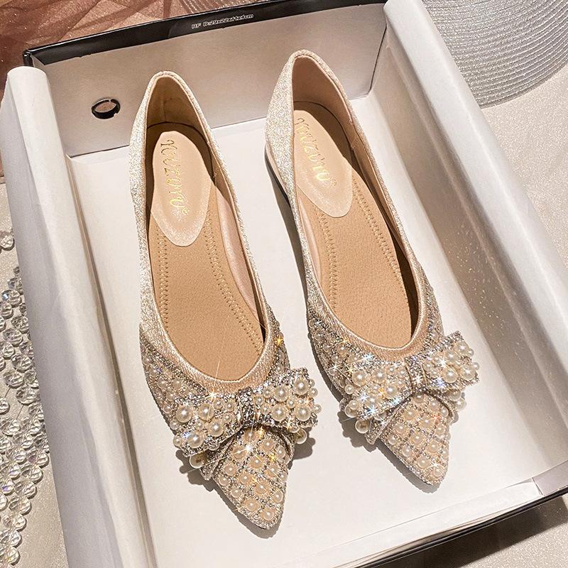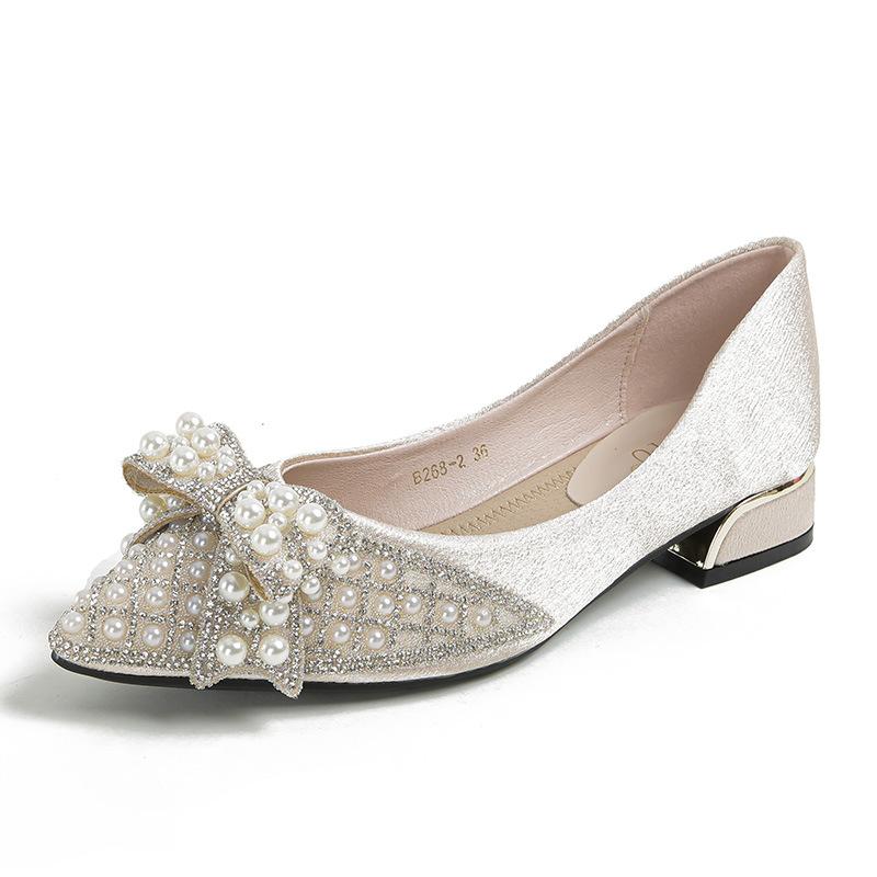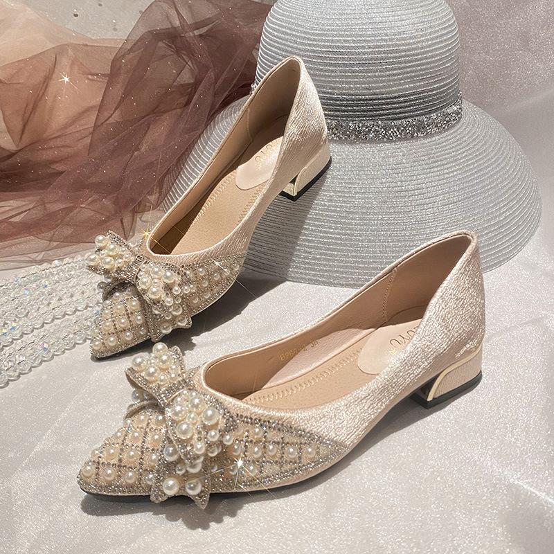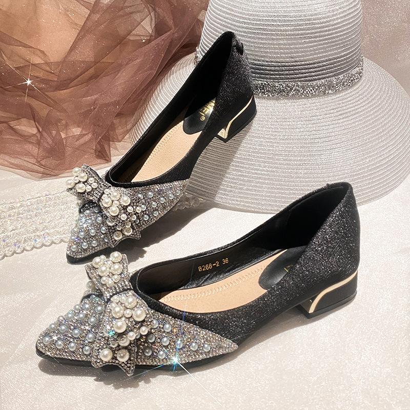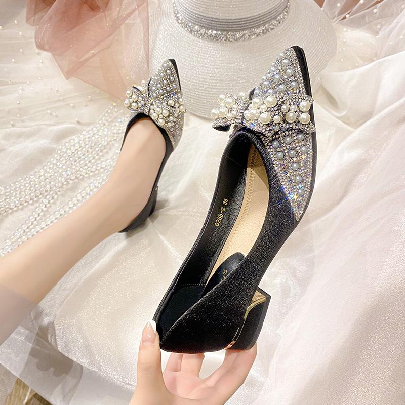 Новые туфли на среднем каблуке в стиле феи, универсальные туфли на высоком каблуке с жемчужным узором, бабочкой и толстым каблуком, с острым носком, модные туфли-одиночки