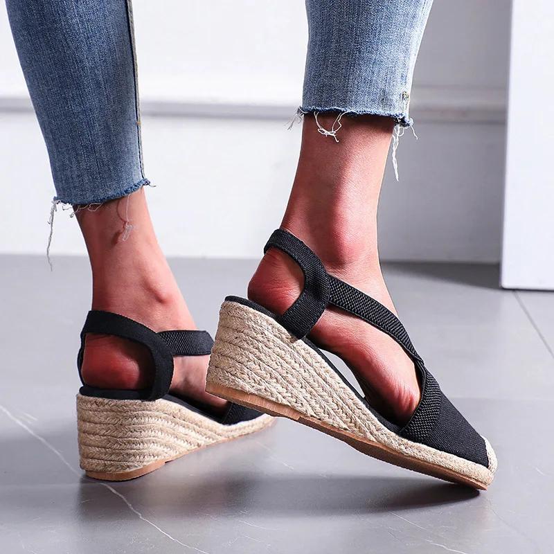 Модные летние женские сандалии 2024 Соломенные плетеные танкетки Эспадрильи Сандалии Большой размер Женская обувь Женские сандалии-гладиаторы Слингбэки
