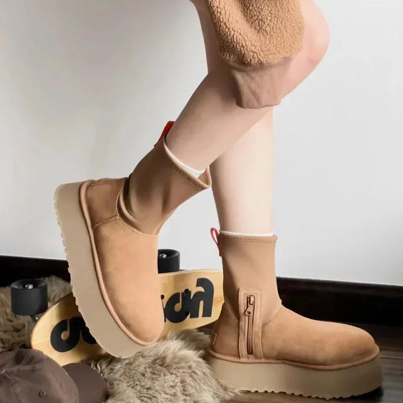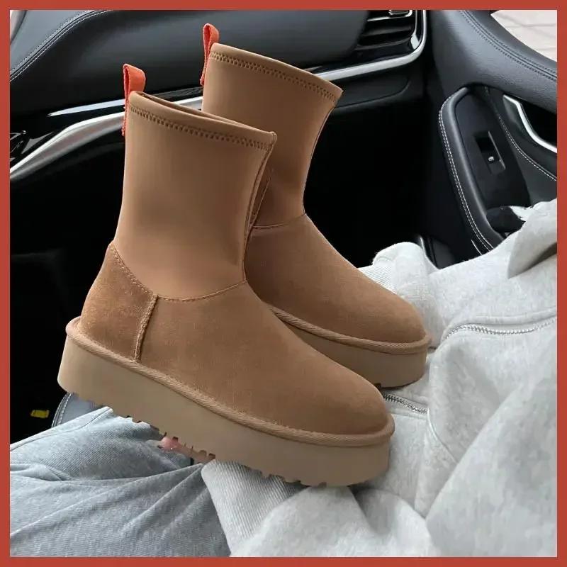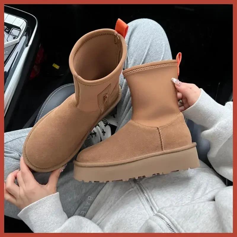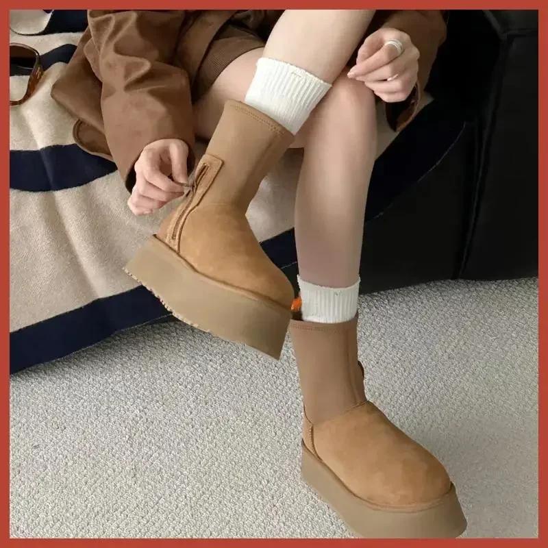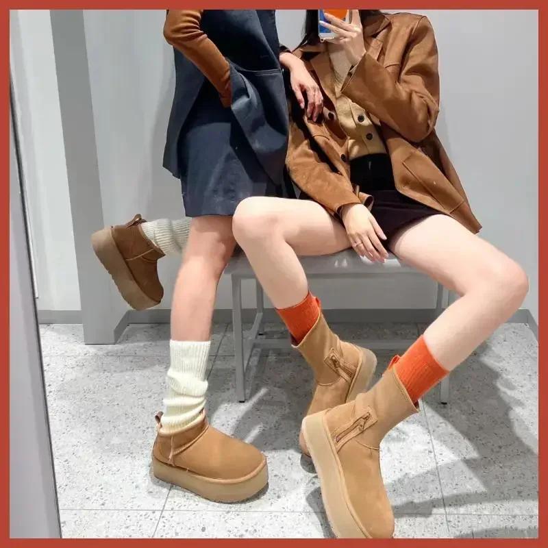 Первый слой коровьей кожи, женские зимние сапоги из утолщенной шерсти, теплые высокие ботинки-карандаши, женская обувь, устойчивая к снегу