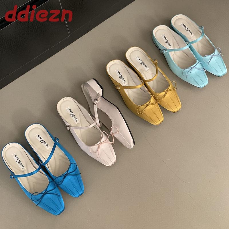 Мода Мода Туфли-лодочки с бантом-бабочкой Женские туфли на плоской подошве Женская обувь с мелким вырезом Слипоны Женские туфли на плоской подошве Слайды Мюли
