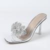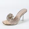 Мода Liyke Мода Золото Стразы Цветы Квадратный Носок 9СМ Прозрачные Каблуки Тапочки Летние Сандалии Прозрачная Обувь Для Женщин Мюли Слайды