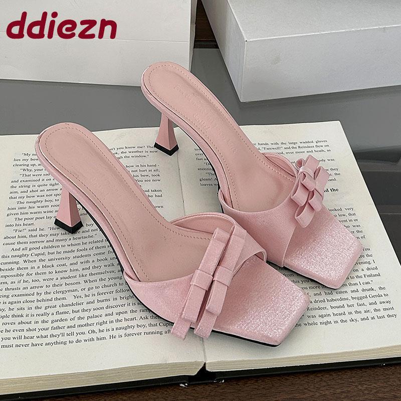 Fashion Pink Fashion Butterfly-Knot Ladies High Heels Sandals Female Slip On Footwear Elegant Women Heeled Sandals Shoes Slides Pumps