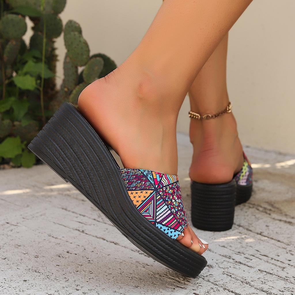 Модные женские тапочки-клинья, летние модные тапочки с принтом, уличные сандалии на платформе для пляжа, большие размеры, шлепанцы для женщин, zapatos de mujer
