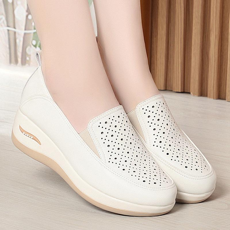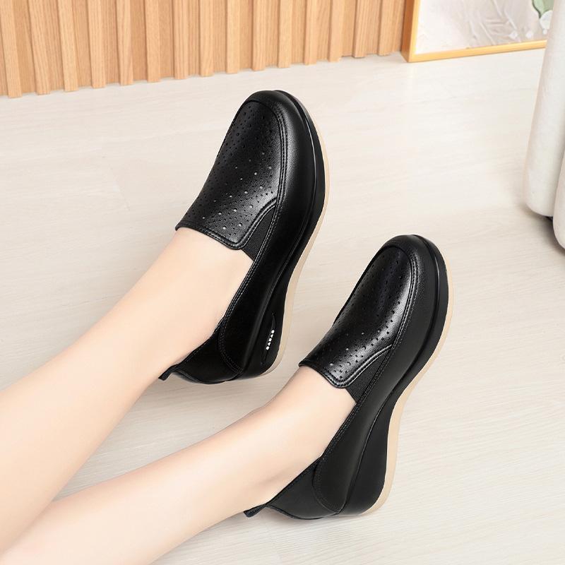 Модная Дышащая Удобная Обувь из Мягкой Кожи с Неглубоким Вырезом Женские Лоферы 2024 Лето Обувь на Платформе и Танкетке Для Офиса Мамы На Досуге