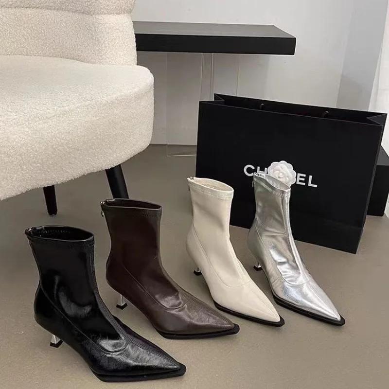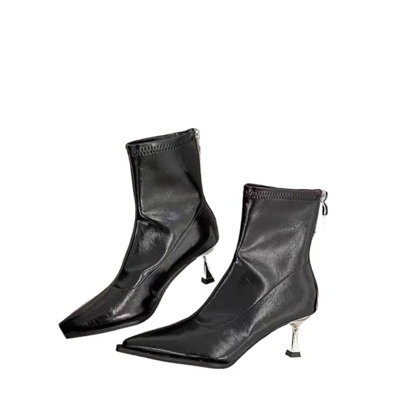 Женские модные тонкие сапоги на каблуке, осень, новые, заостренные сзади, на молнии, темпераментные, короткие сапоги на высоком каблуке