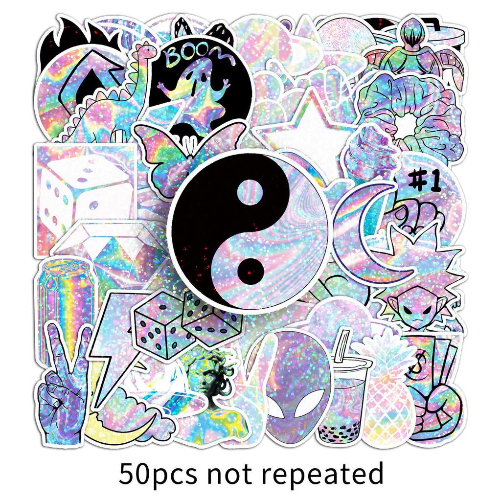 50 Голографических Лазерных Блестящих Наклеек: Трендовый, Креативный, Водонепроницаемый Декор для Чехлов для Телефонов и Термокружек — купить товар онлайн с бесплатной доставкой по всему миру!