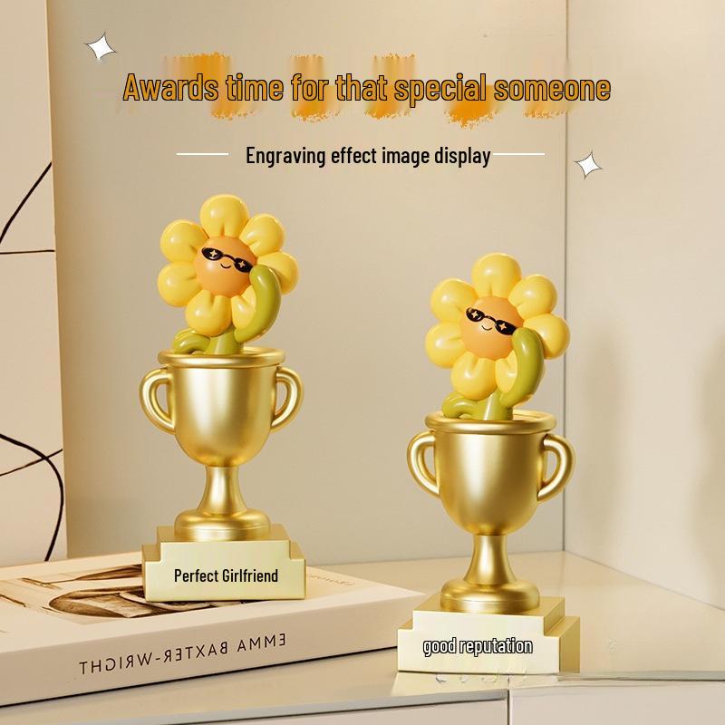 Creative Sunflower Trophy Figurine: Cute, Funny Resin Desktop Decoration with Engravable Gift Option