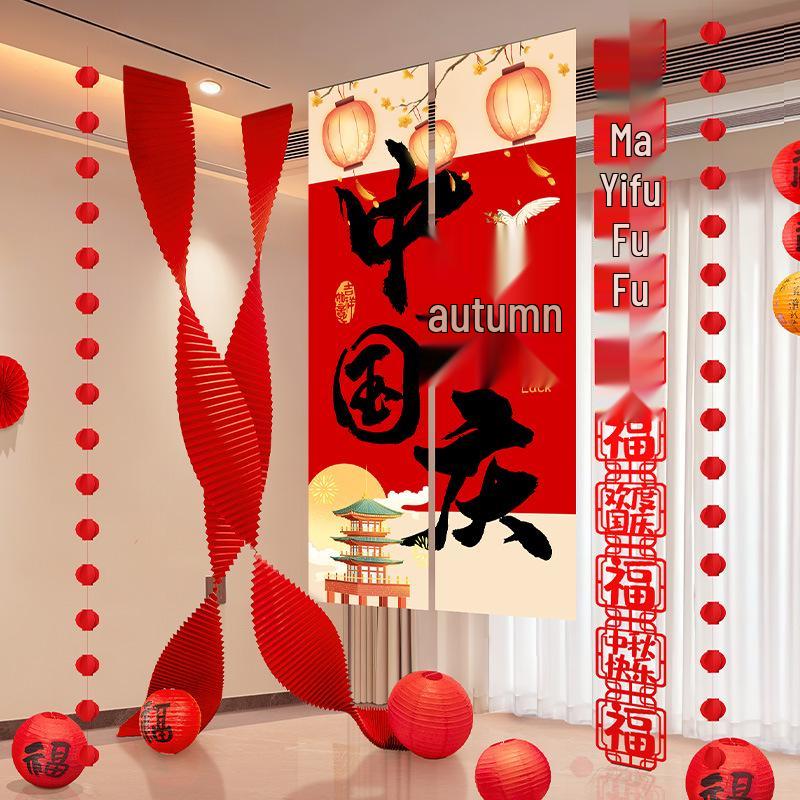 Баннер-сцена с китайскими фонариками на Праздник середины осени и День образования КНР 2025 года для детского сада