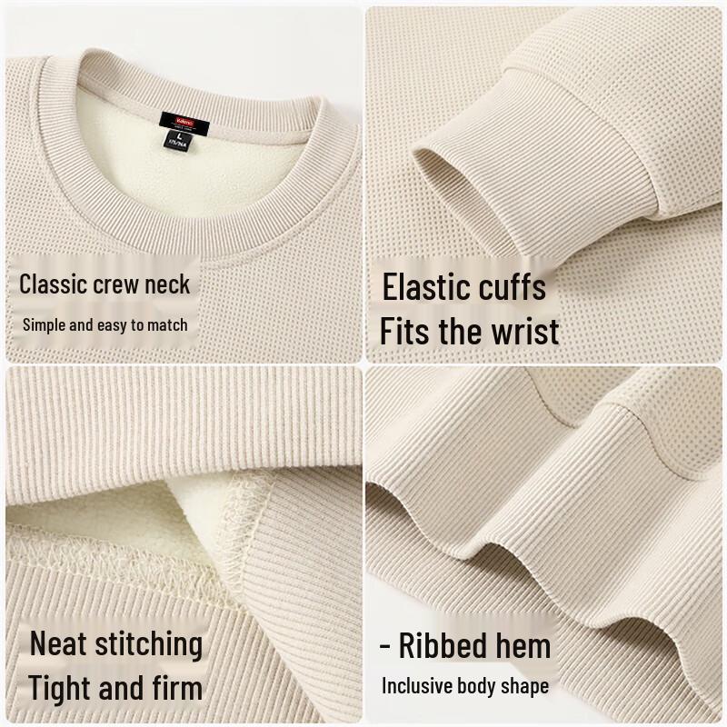 Baleno Men's 410g Heavyweight Fleece-Lined Crew Neck Sweatshirt with Plaid Texture