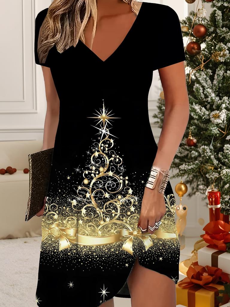 Модное женское платье с V-образным вырезом и коротким рукавом, с принтом рождественского снеговика, сексуальное короткое платье