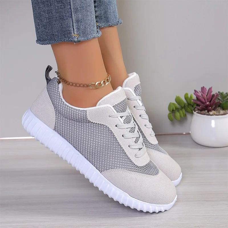 Модные универсальные сочетающиеся по цвету, горячо продаваемые женские вулканизированные туфли с мелким вырезом, на шнуровке, из сетчатого дышащего материала, женские туфли