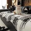1pc Zebra Stripes Jacquard Contrast Colour Warm Fleece Sofa Towel, Sofa Winter Leisure Blanket for Living & Bed Room Decor