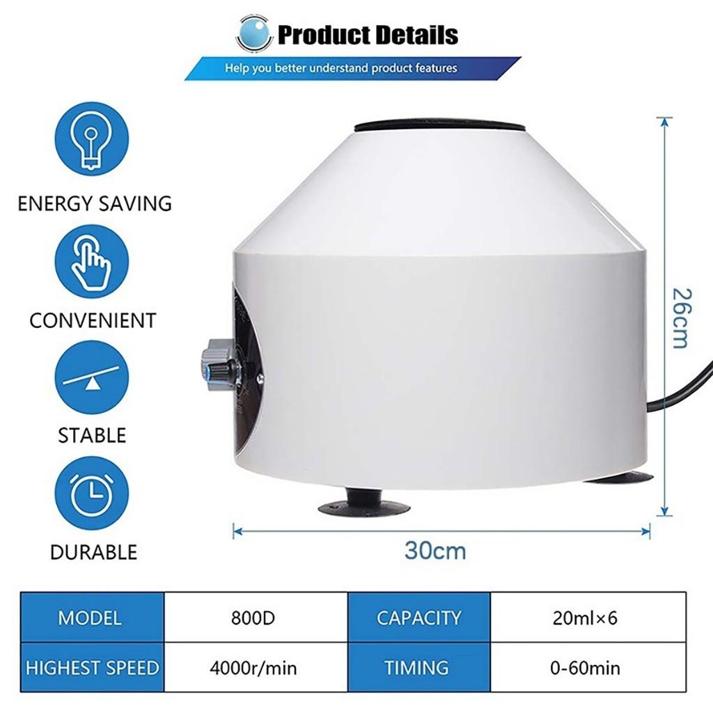 Центрифуга с максимальной скоростью 4000 об/мин, в основном используется для оценки радиоиммунитета и разделения клеток или частиц.- Функция таймера, диапазон времени от 0 до 60 минут.- Функция контроля скорости.- Резиновые присоски помогают машине прочно прилипать к столу и работать стабильно.
