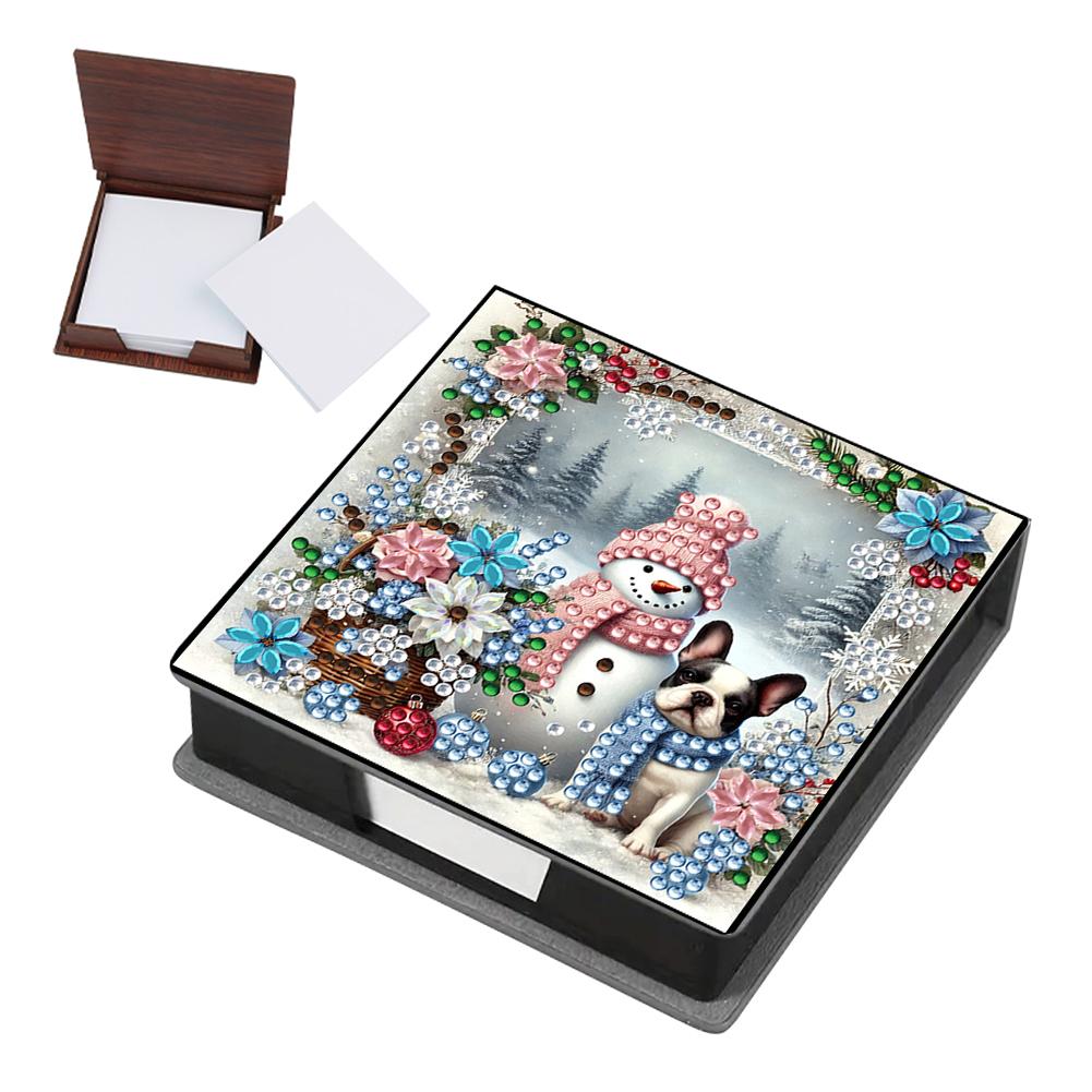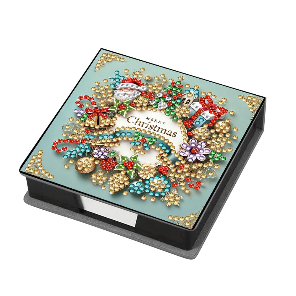 5D DIY PU Diamond Painting Notecard Box with 160 Sheets Paper Self Adhesive Crystal Note Box Xmas Pattern for Home Office