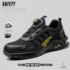 Safety Shoes For Men Air Cushion Steel Toe Work Shoes Anti-Smash Shoe Lightweight Breathable Slip On Utility Work Sneakers Black