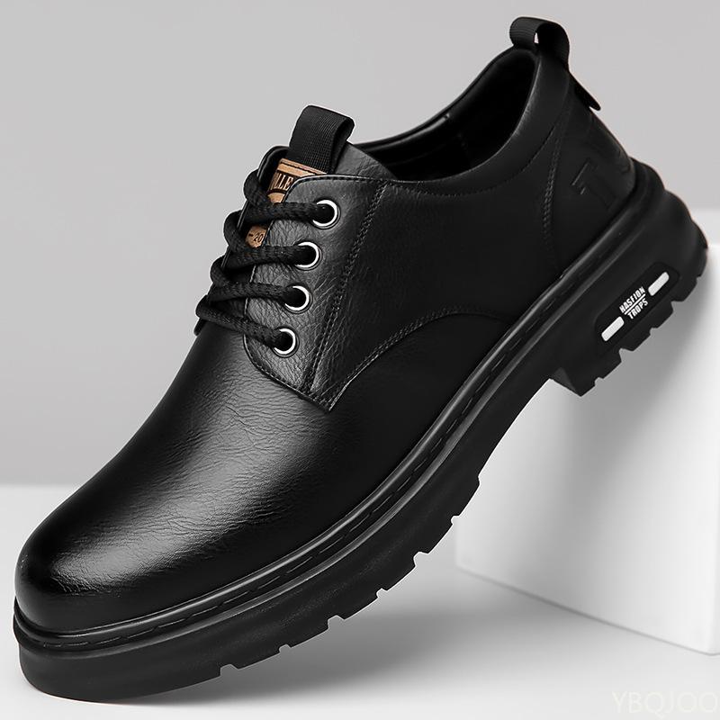 Retro New Men'S Leather Shoes Handmade Business Casual Workwear Men Shoes Solid Color Lace Up Soft Sole Breathable Sports Shoes