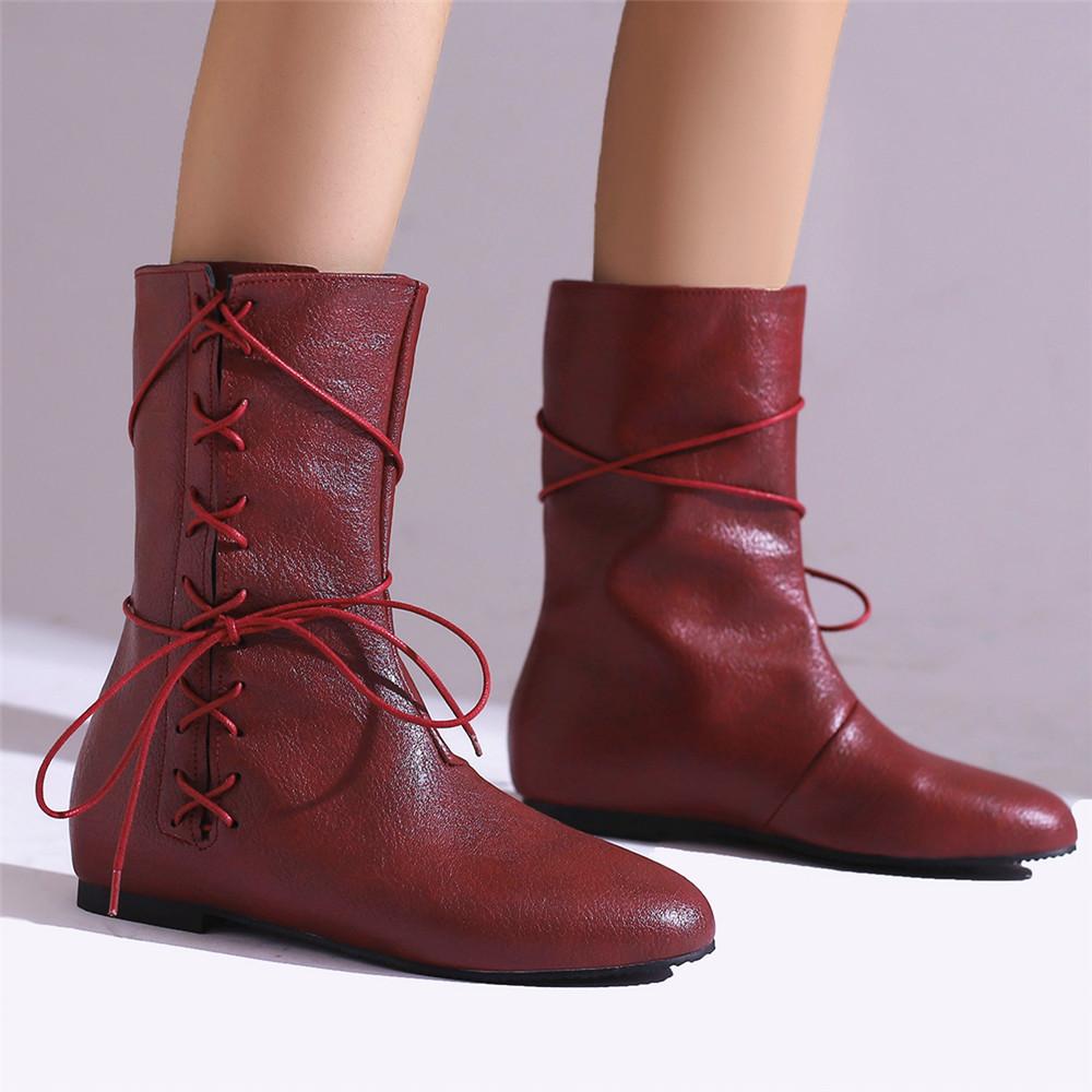 Женские полусапоги до середины икры, ретро, с перекрестными ремешками, на плоской подошве, элегантные сапоги, весенне-осенние сапоги на шнуровке, праздничная обувь, круглый носок, плоские ботильоны, боты
