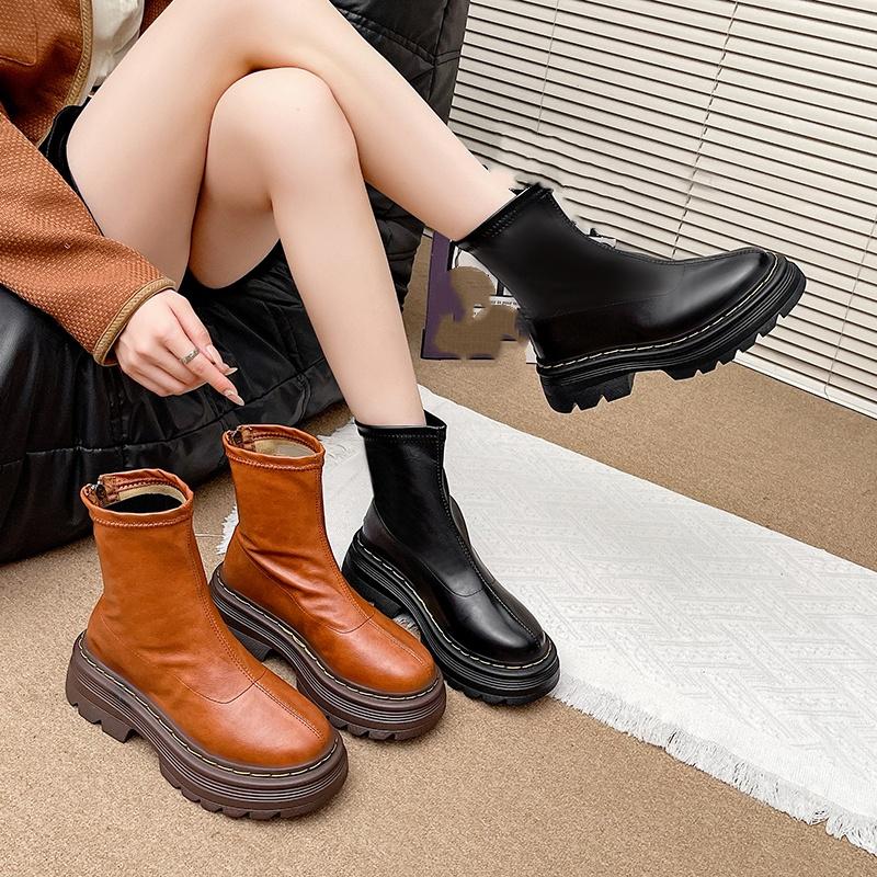 Весна/Осень Удобные Кожаные Короткие Ботинки на Задней Молнии Модные Новые С Круглым Носком Сексуальные На Шнуровке Повседневные Ботинки для Ходьбы Женские