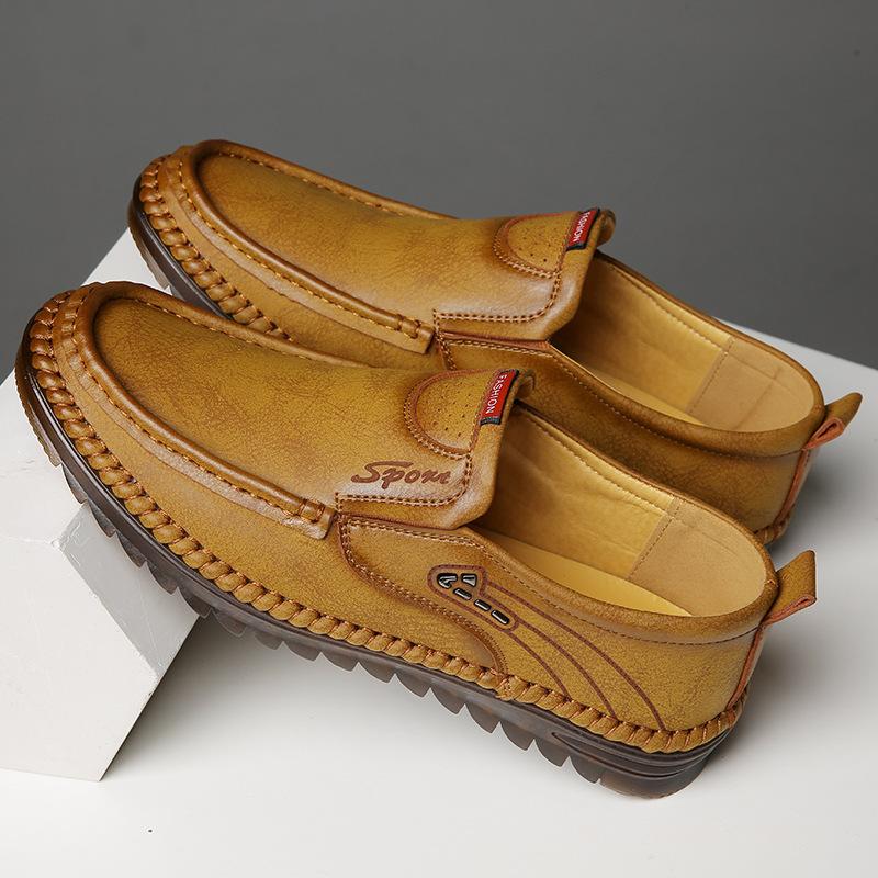 Новый стиль Мужские классические ретро лоферы Легкие удобные кожаные туфли для вождения Швейные мужские повседневные слипоны